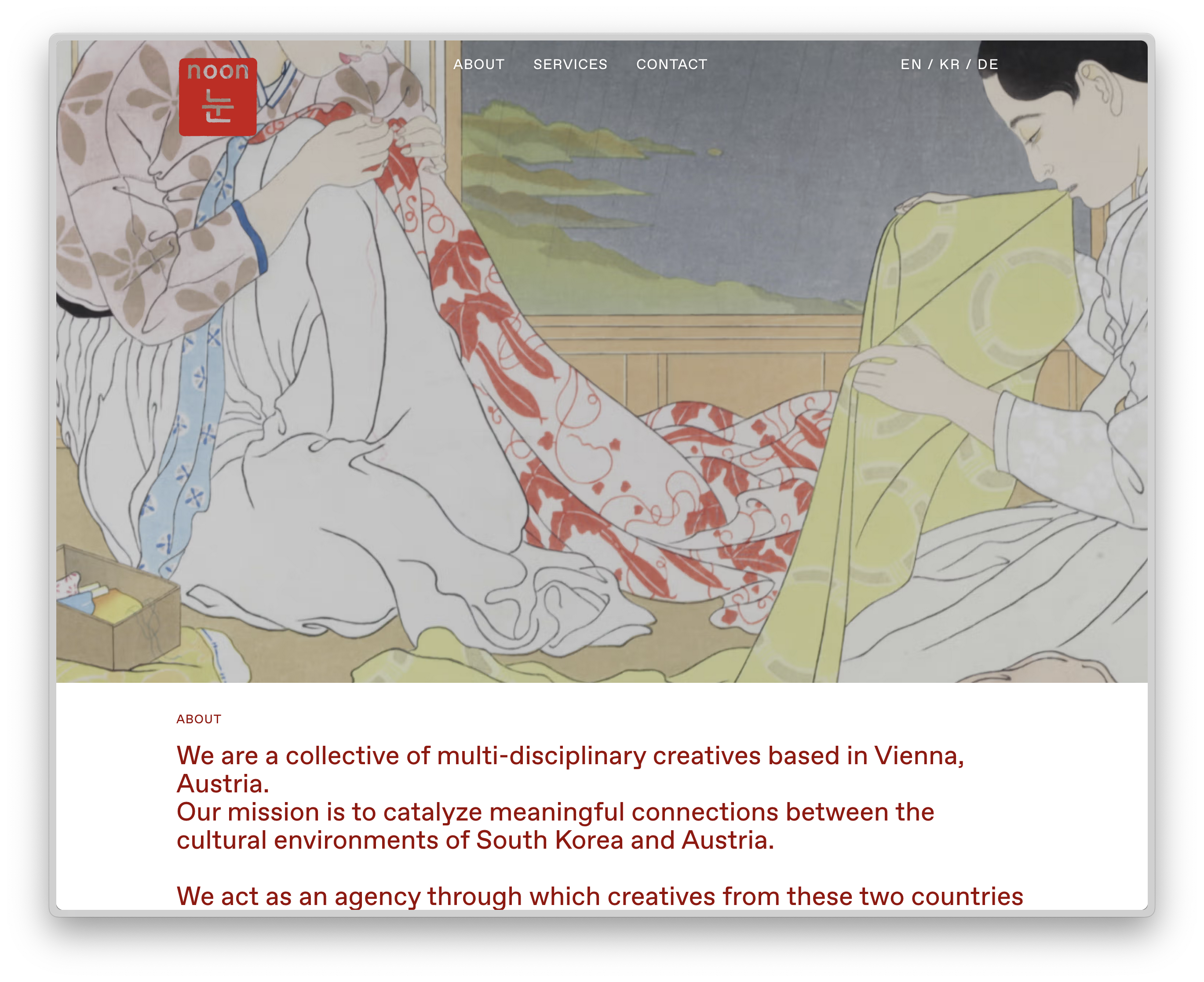 Noon is a collective of multi-disciplinary creatives bridging the cultural environments of South Korea and Austria, facilitating artistic exchange, residencies, exhibitions, and art transactions between the two countries.